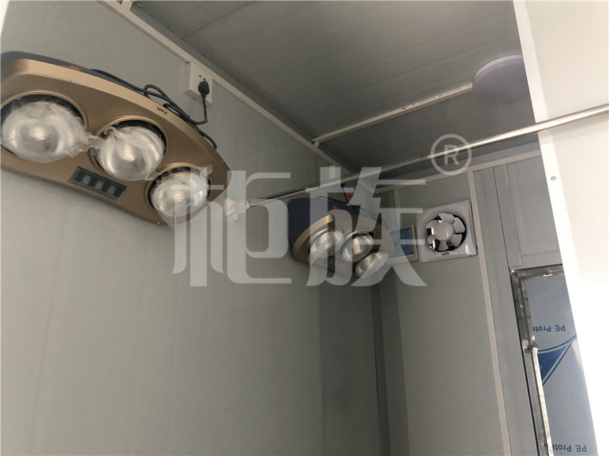 箱體用材:鍍鋅方管框架、A級大波紋夾芯墻板、不銹鋼門、鋁花紋地板。