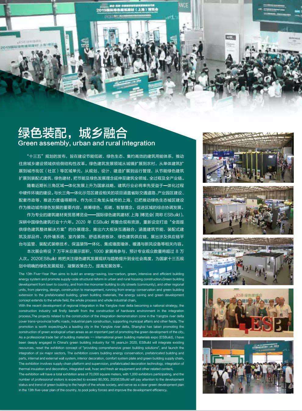 2020國(guó)際綠色建筑建材(上海)博覽會(huì)(2020ESBuild)于7月15日正式拉開帷幕。2020ESBuild以打造“全面提供綠色建筑整體解決方案”為理念,推出六大板塊互通融合,涵蓋建筑節(jié)能、裝配式建筑及部品件、內(nèi)外墻系統(tǒng)、室內(nèi)裝飾、舒適系統(tǒng)、綠色建筑供應(yīng)鏈,展出涉及供應(yīng)鏈平臺(tái)與監(jiān)管、裝配式裝修技術(shù)、保溫裝飾一體化、集成墻面墻體、暖通與新風(fēng)設(shè)備等相關(guān)內(nèi)容。