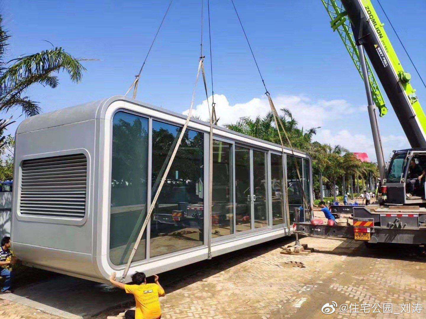 柜族本次參展的產(chǎn)品——逸海小筑位于E2裝配式建筑展區(qū)的2269展位,是一款以藍(lán)白為主色調(diào)、融入了水與波浪元素的海洋風(fēng)集裝箱別墅。該產(chǎn)品的設(shè)計(jì)理念為環(huán)保、舒適、旅居,以不破壞場(chǎng)地與自然環(huán)境為出發(fā)點(diǎn),整個(gè)產(chǎn)品為工廠預(yù)制完成,地面抬高3個(gè)臺(tái)階,有效隔離了地面的潮氣。箱子著力點(diǎn)有圓柱支撐,底座圓盤加大了受力面積和整體平衡性。箱子整體分為一、二層兩個(gè)模塊,用吊機(jī)和平板車整體裝卸運(yùn)輸,在選好的平整地面直接擺放就可以入住使用了。