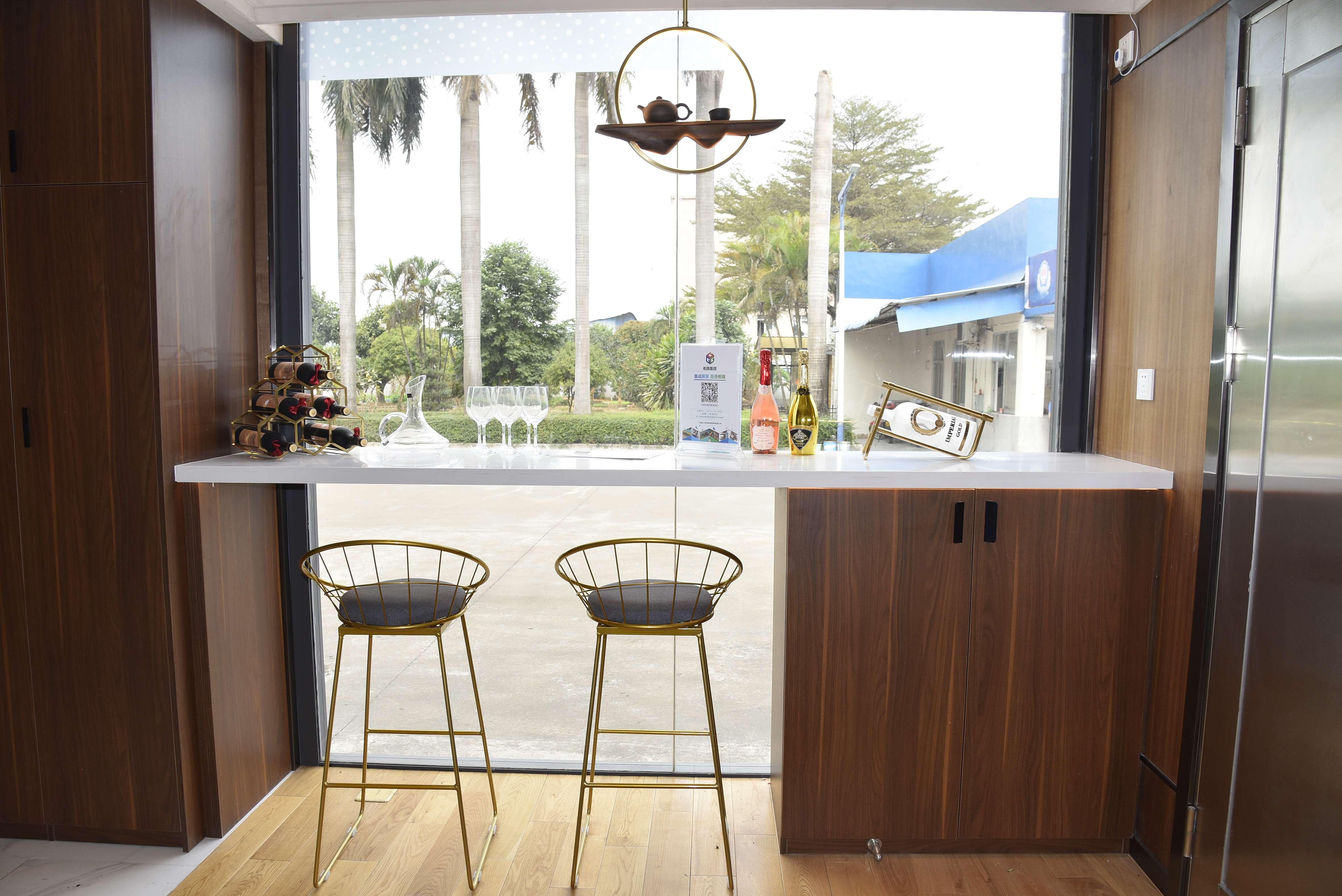 在功能布局上,一層起居、二層休閑。一層進(jìn)門右邊為吧臺(tái)、左邊沙發(fā)茶幾,上部天花為暗藏小玄機(jī)的升降床。衛(wèi)生間、洗漱臺(tái)與臥室相連,飄窗小陽臺(tái),處處體現(xiàn)的都是居住的方便與舒適。大面積落地窗,就是為風(fēng)景好的沙灘、海邊等度假地設(shè)計(jì)的,室內(nèi)生活溫馨小資、戶外美景賞心悅目,陶醉其中、無限樂趣。